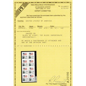 537, Mint FVF NH 3¢ Top Plate Block of Six - Stuart Katz