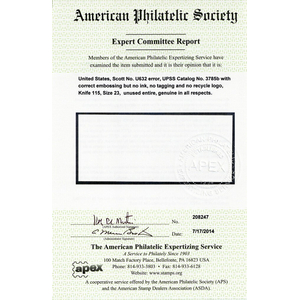 U632c, 32¢ Entire All Colors Omitted Error With Normal APS Cert * Stuart Katz