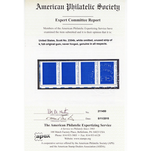 2354b, MNH VF 22¢ White Color Omitted Error With Normal APS Cert * Stuart Katz