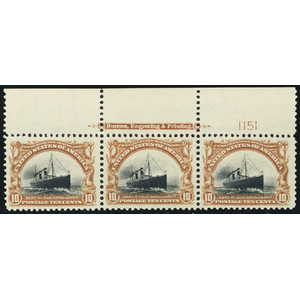 299, Mint VF/XF NH - 10¢ PL# - Imprint Strip - WoW - Stuart Katz