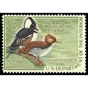 RW35, Mint VF NH Hooded Mergansers Federal DUCK Stamp - Cat $75.00