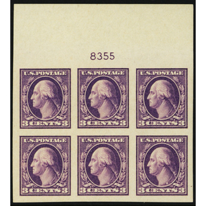 484, Mint NH Superb 3¢ Top Plate Block of Six Stamps - Stuart Katz
