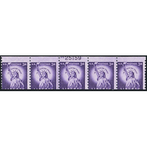 1057, Mint NH 3¢ Dramatic PL# Captured on Coil Line Strip Error - Stuart Katz