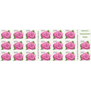 Coral Pink Rose Pane of Twenty 33 Cent Postage Stamps Scott 3052d