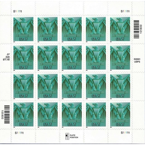 Art Deco Green Eagle Sheet of Twenty 57 Cent Postage Stamps Scott 3471A