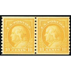 497, Mint 10¢ VF NH Coil Line Pair Cat $260.00 - Stuart Katz