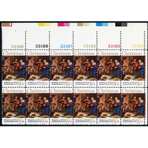 1444, Large Color Shift ERROR Plate Block of 12 8¢ Stamps - Stuart Katz