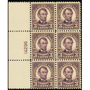555, Mint VF NH 3¢ Lincoln Plate Block of Six - Stuart Katz
