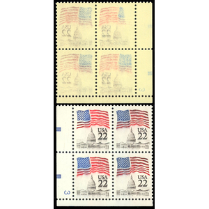 2114 22c Flag - Reverse printing on back ERROR PL# Block of Four - Stuart Katz