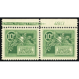 E7, Mint VF NH 10¢ Imprint & PL# Pair SCV $280.00 - Stuart Katz