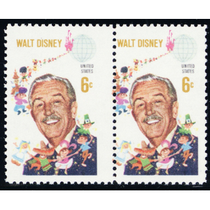 1355, Mint NH 6¢ Disney - Misplaced Perfs Misperfed Pair Error - Stuart Katz