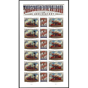 Transcontinental Railroad Pane of 18 Current Rate Stamps Scott 5380b
