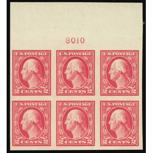 527, Mint LH F-VF 2¢ WIDE TOP Plate Block of Six Stamps - Stuart Katz
