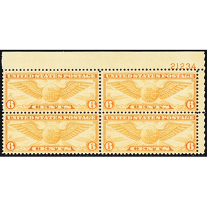 537, Mint H 3¢ VF Plate Block of Six Stamps CV $260 - Stuart Katz