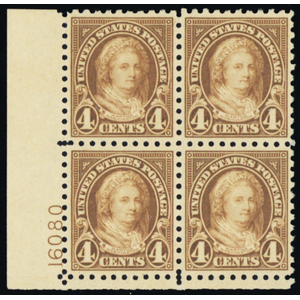 586, Mint F/VF NH 5¢ Plate Block of Four - Stuart Katz