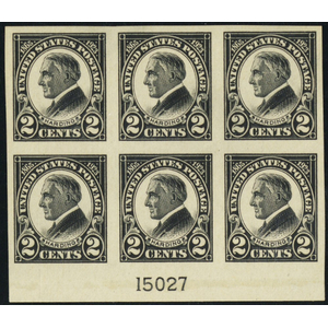 611, Mint XF NH 2¢ Plate Block of Six - Stuart Katz