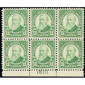 622, Mint VF NH 13¢ Plate Block of Six - Stuart Katz