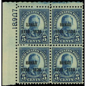 648, Mint VF H 5¢ Plate Block of Four Stamps CV $200.00 - Stuart Katz