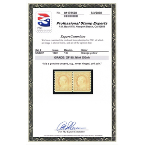 497, Mint NH XF 10¢ Coil Pair - PSE Graded 90 Certificate * Stuart Katz