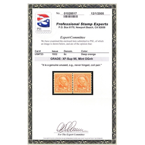723, Mint NH XF/Superb 6¢ Coil Pair - PSE Graded 95 Certificate * Stuart Katz