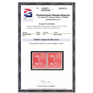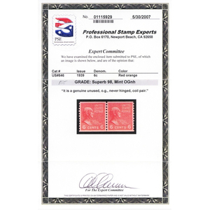 846, MNH Superb Coil Pair - PSE Graded 98 Certificate - Stuart Katz