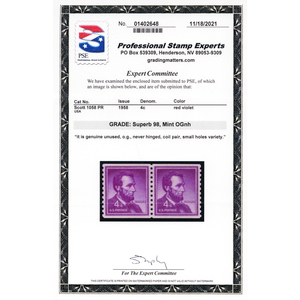 1058, MNH Superb Sm Holes Coil Pair - PSE Graded 98 Certificate - Stuart Katz