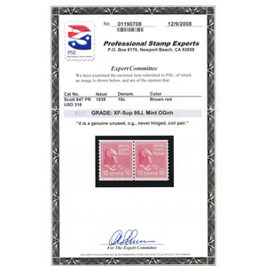 847, MNH XF/Superb Coil Pair - PSE Graded 95J JUMBO Certificate - Stuart Katz