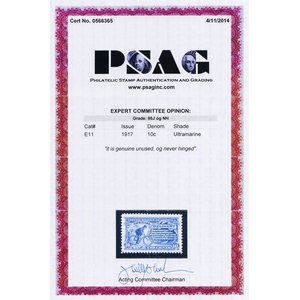E11, Mint XF NH 10¢ - With Graded 95J JUMBO PSAG Certificate - Stuart Katz