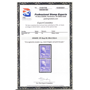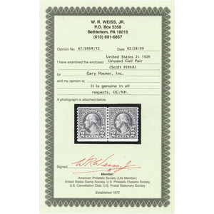 599A, Mint NH 2¢ Coil Pair - With Certificate - Stuart Katz