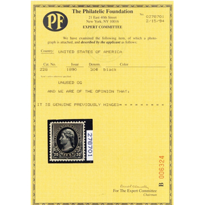 228, Mint VF XLH 30¢ (Looks NH) With PFC Certificate - Stuart Katz