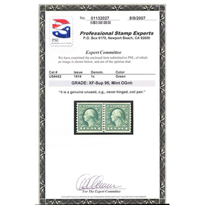 452, Mint XF/Sup NH 1¢ Coil Pair - With Graded 95 PSE Certificate - Stuart Katz