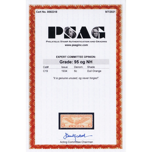 C19, Mint NH XF/Superb 6¢ With PSAG Graded 95 Certificate - Stuart Katz