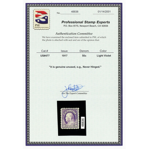 477, Mint VF NH 50¢ Franklin - With Clean PSE Certificate * Stuart Katz