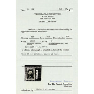 34, Used 10¢ - Position 74L1 - With Clean PFC Certficate * Stuart Katz