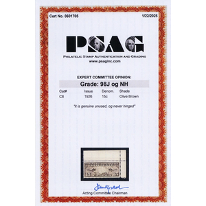 C8, Mint Superb NH 15¢ With Graded 98J JUMBO PSAG Certificate * Stuart Katz