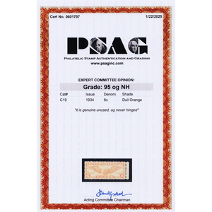 C19, Mint XF/Superb NH 6¢ With Graded 95 PSAG Certificate ** Stuart Katz