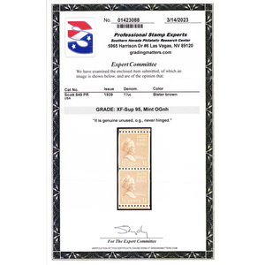 849, Mint XF/Superb NH Pair - With Graded 95 PSE Certificate * Stuart Katz
