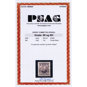 308, Mint XF NH 13¢- Very Well Centered * Stuart Katz