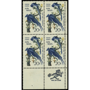 C71, MNH 20¢ Full Reverse Printing Under Gum Zip Block Error * Stuart Katz
