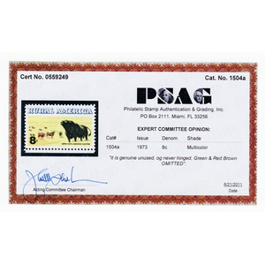 1504a, Green & Red Brown Colors Omitted Major Error MNH PSAG Cert - Stuart Katz