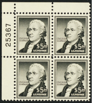 1053, Mint VF NH $5 Hamilton Plate Block ** Stuart Katz