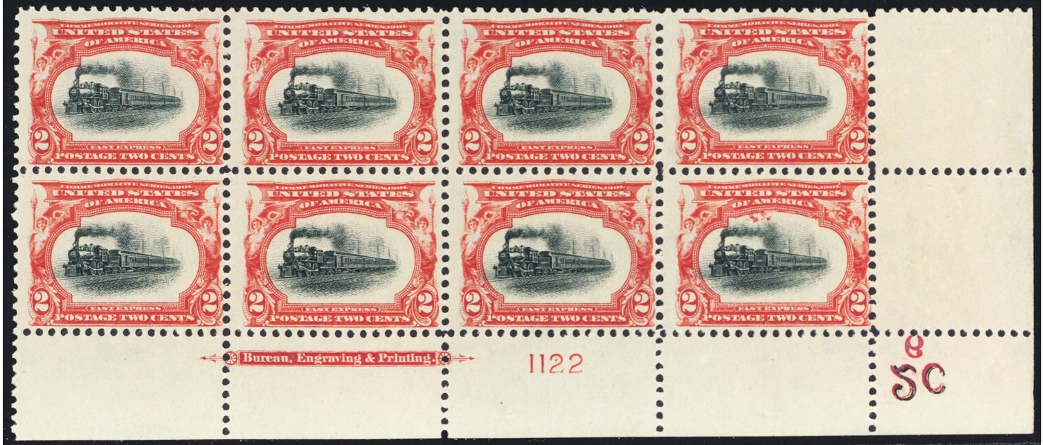 295, Mint NH 2¢ Fast Train Plate Block of Eight Stamps CV $580+ - Stuart Katz