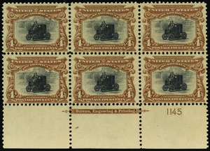 296, Mint VF LH 4¢ Plate Block of Six Solid Plate! SCV $2750 - Stuart Katz