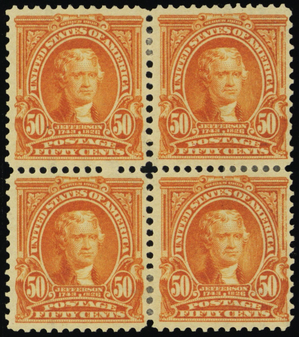 310, Mint OG HR 50¢ VERY RARE Block of Four With PFC Cert CV $1900 - Stuart Katz