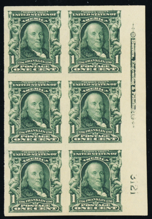 314, Mint NH XF 1¢ Plate Block of Six SCV $310 * Stuart Katz