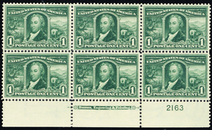 323, Mint VF/XF NH 1¢ - Plate Block of Six - Stuart Katz