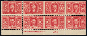 324, Mint NH 2¢ Plate Block of Eight Stamps CV $720 - Stuart Katz