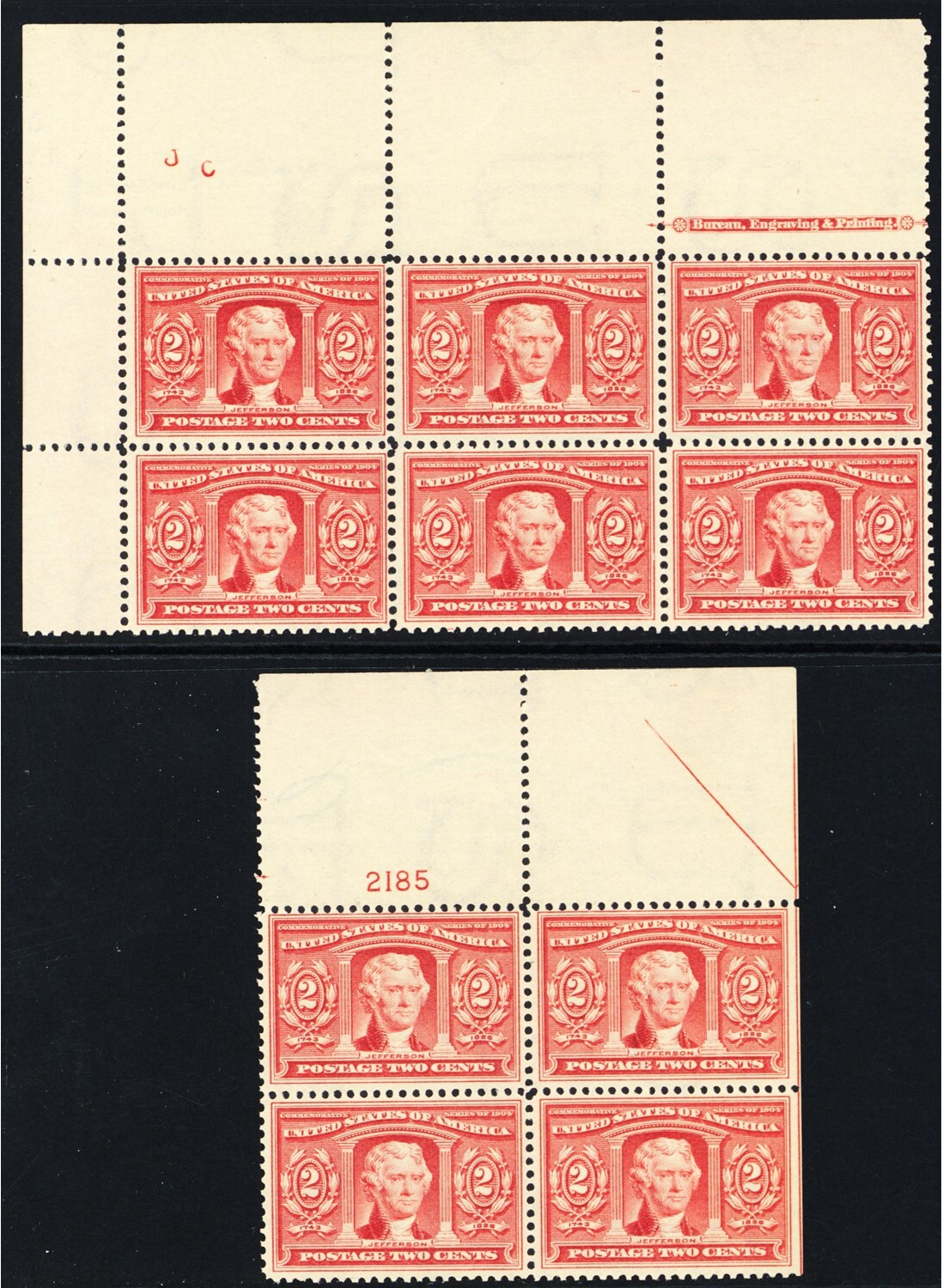 324, Mint NH 2¢ - Two Blocks CV $600.00 * Stuart Katz