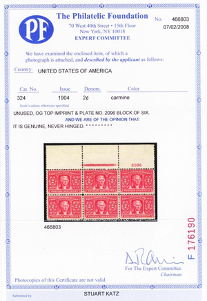 No refunds will be made after 60 days after the sale date unless extra time is granted. Due to the high cost of obtaining certificates we will only refund the cost of the stamp and not the cost of the certificate. For U.S. stamps only certificates from either APS, PSE or from the Philatelic Foundation are accepted, however "graded" certificates or "encased" items are not accepted.
