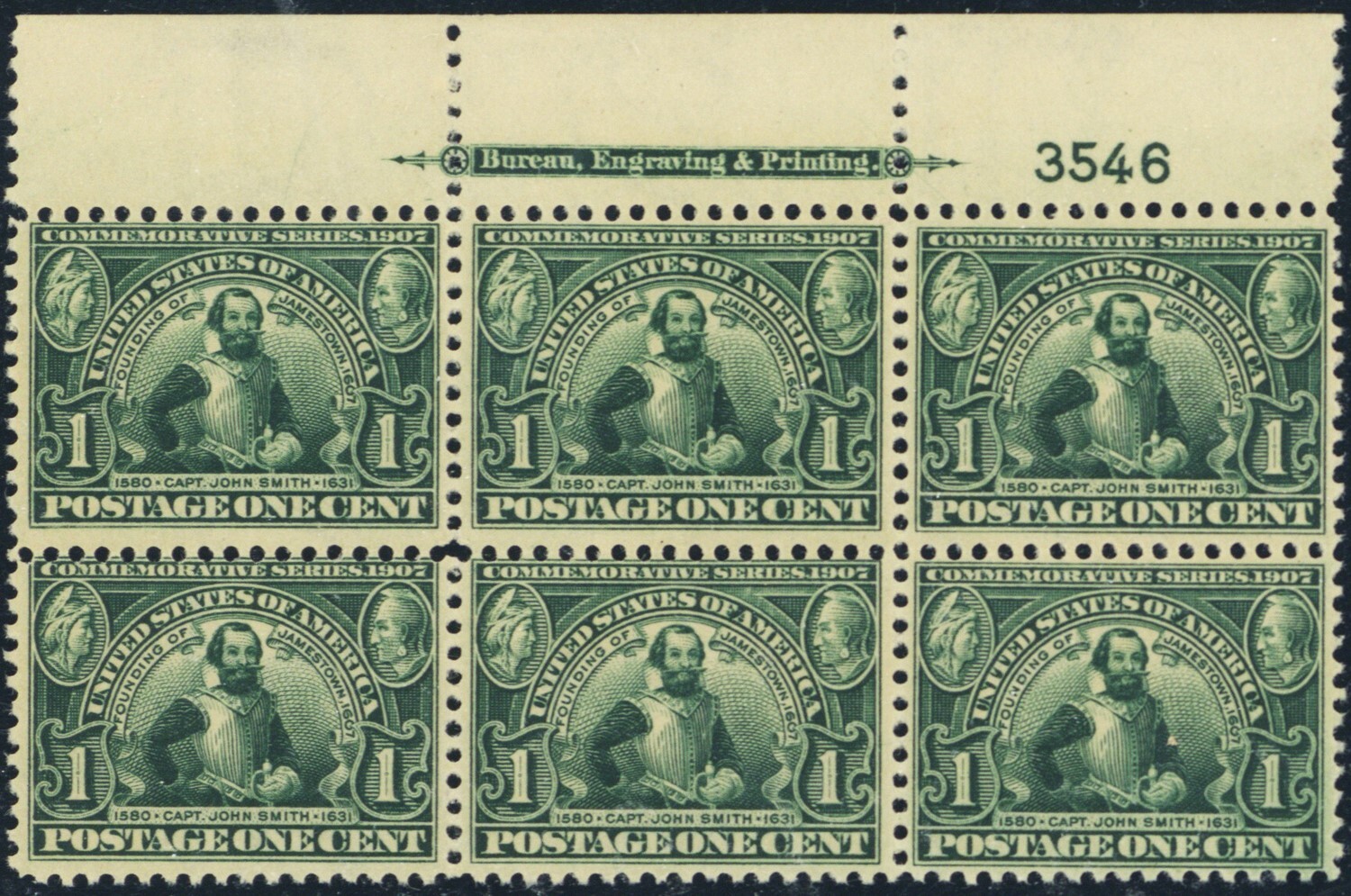 328, Mint F-VF NH Top Plate Block of Six SCV $850 * Stuart Katz